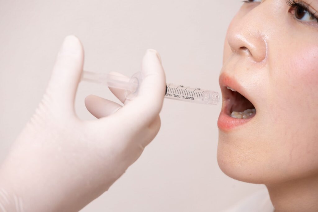 当院ではゼリータイプを30秒間のどにため吐きだし、その後スプレータイプを使用してのどの麻酔を行っています。