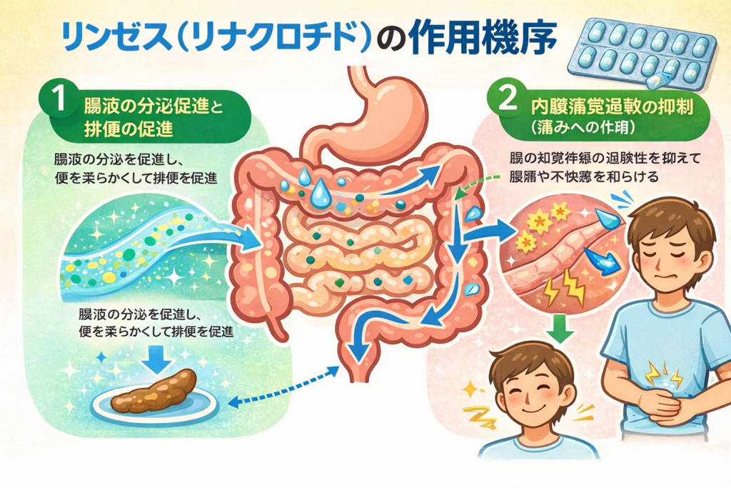 GC-C受容体作動薬「リンゼス」が水分分泌と痛覚を同時に改善する作用機序
