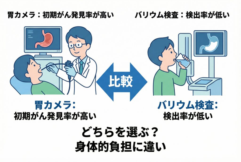 Q1: 胃カメラとバリウム検査、どちらが胃がんの早期発見に優れていますか?