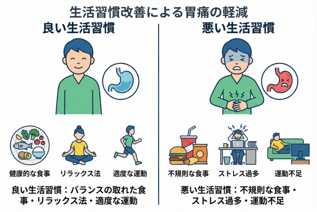 医師や管理栄養士の指導のもと、これらの生活習慣を改善していくことが、胃痛のない快適な日々を送るための鍵となります。