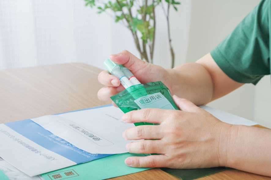 便潜血検査は、便に血が混ざっているかどうかを調べるための検査です。専用の検査キットを使い、1日もしくは2日分の便を採取して検査機関へ提出します。2日法のほうが大腸がんの発見率が高いことから、2日法で検査するのが一般的です。