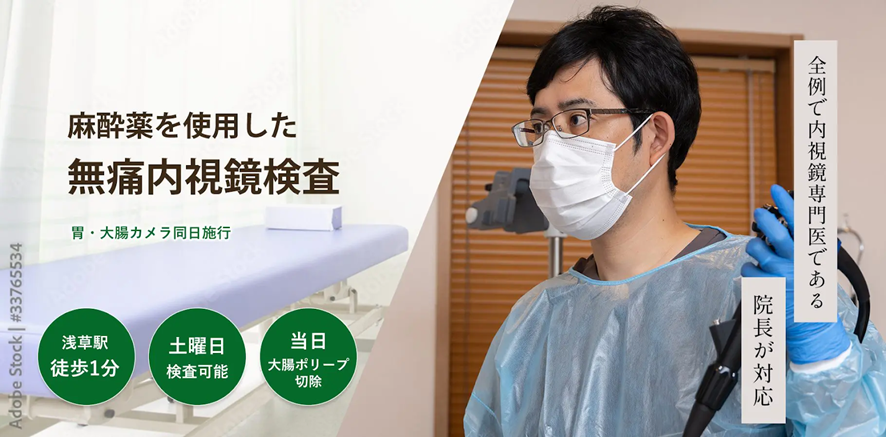 当院の大腸カメラは鎮静剤を使用して行うため、患者様の苦痛を大幅に軽減することが可能です。内視鏡専門医である院長が責任を持って担当し、大腸ポリープがあれば当日切除も可能です。当院の苦痛の少ない大腸カメラ検査や検査の値段の詳細はこちらを参照してください。